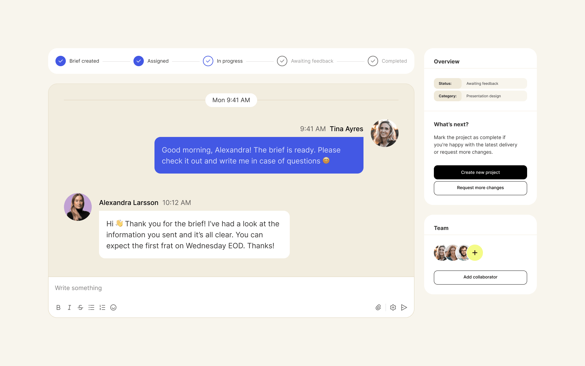 The elements needed to showcase Klingit's working process and highlight how they deliver top-quality services to their clients - from communication and design processes to the final results.